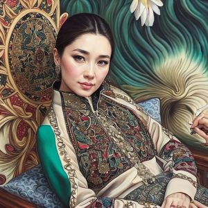 As a child, Aizere’s playground was the vast steppe, a kingdom of green in summer and an empire of white in winter. She was taught to respect the spirits of the land, to listen to the stories carried by the wind, tales of courage, love, and the wild freedom that once ruled her people’s destiny. Her grandmother, a sage adorned in robes of wisdom, would recount legends that made Aizere’s imagination soar like an eagle upon the thermals. And in those moments, a spark ignited within her—a burning desire to capture these stories, to paint them into being.
