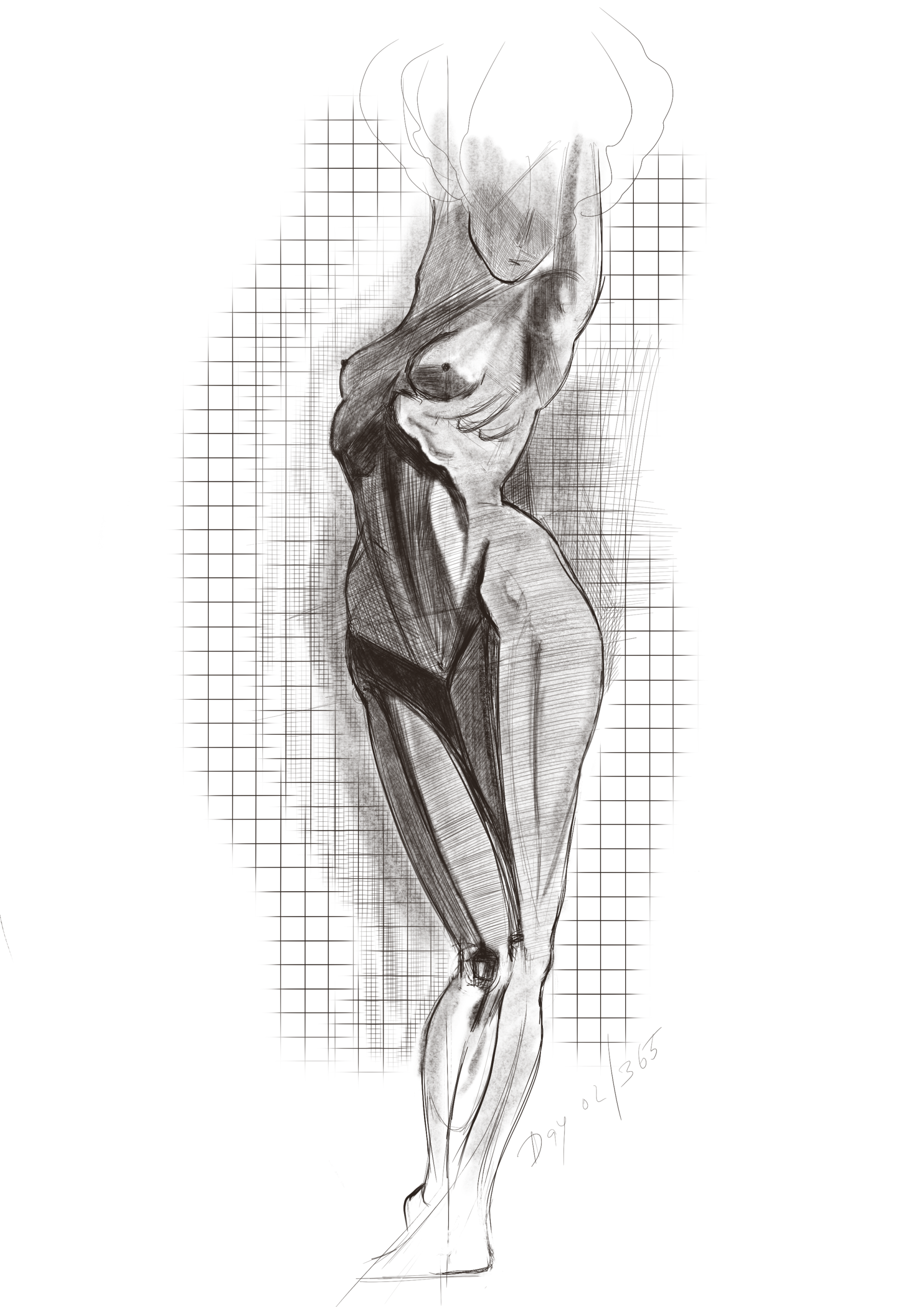 The lead tip grazes the surface, its trail a mixture of intention and instinct. Here, on day 2 of a creative journey that promises to stretch out over the span of a year, the anatomy on display is not just observed but felt. Each line is a reverent exploration of form, a homage to the underlying structures that compose our very essence. There’s an intimacy in this study, a sense of the personal within the universal. It’s an artist’s pursuit, not just of skill, but of understanding, and even as the series is just at its beginning, the commitment to the craft is as deep as the marrow within the bones that the pencil seeks to honour.